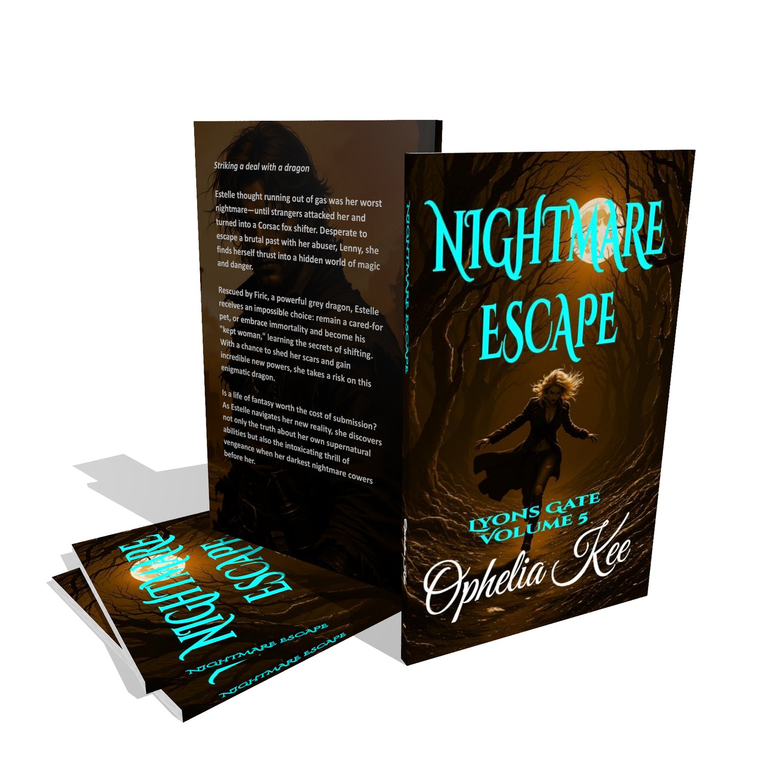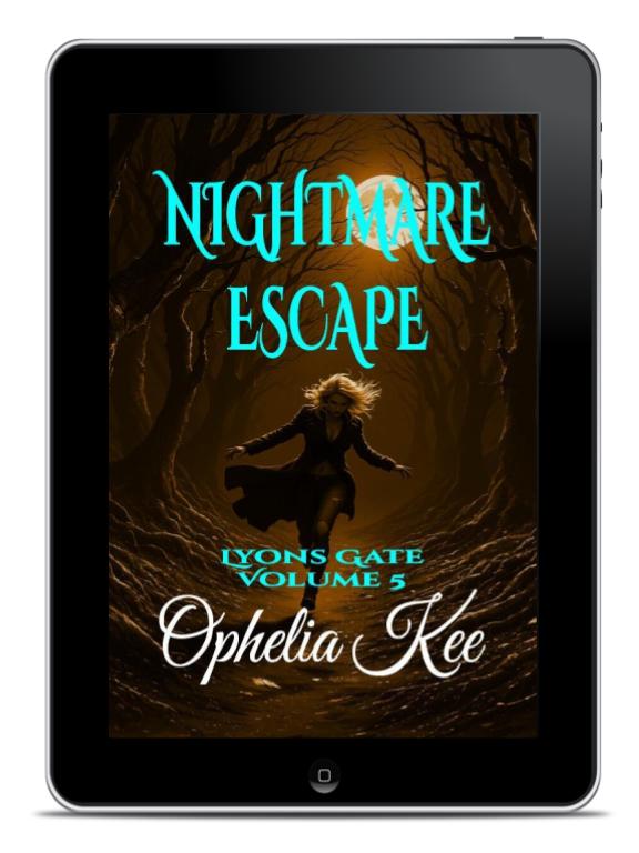 Nightmare Escape is the fifth volume in the dark urban fantasy miniseries, Lyons Gate, by Ophelia Kee. Set in the dream, this spinoff story from the Draoithe Saga tells the tale of a broken girl and a powerful dragon, both seeking new lives. Powerful magical forces and an ancient unknown prophecy conspire to aid them, but the magic twists darkly when druid magic is involved.