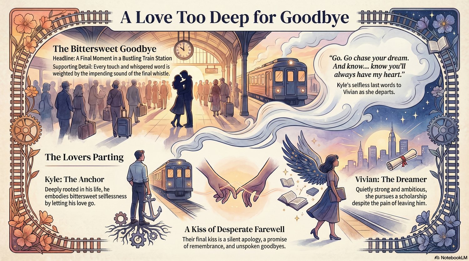 Discover a moment where time stands still, and love battles the final call to departure.