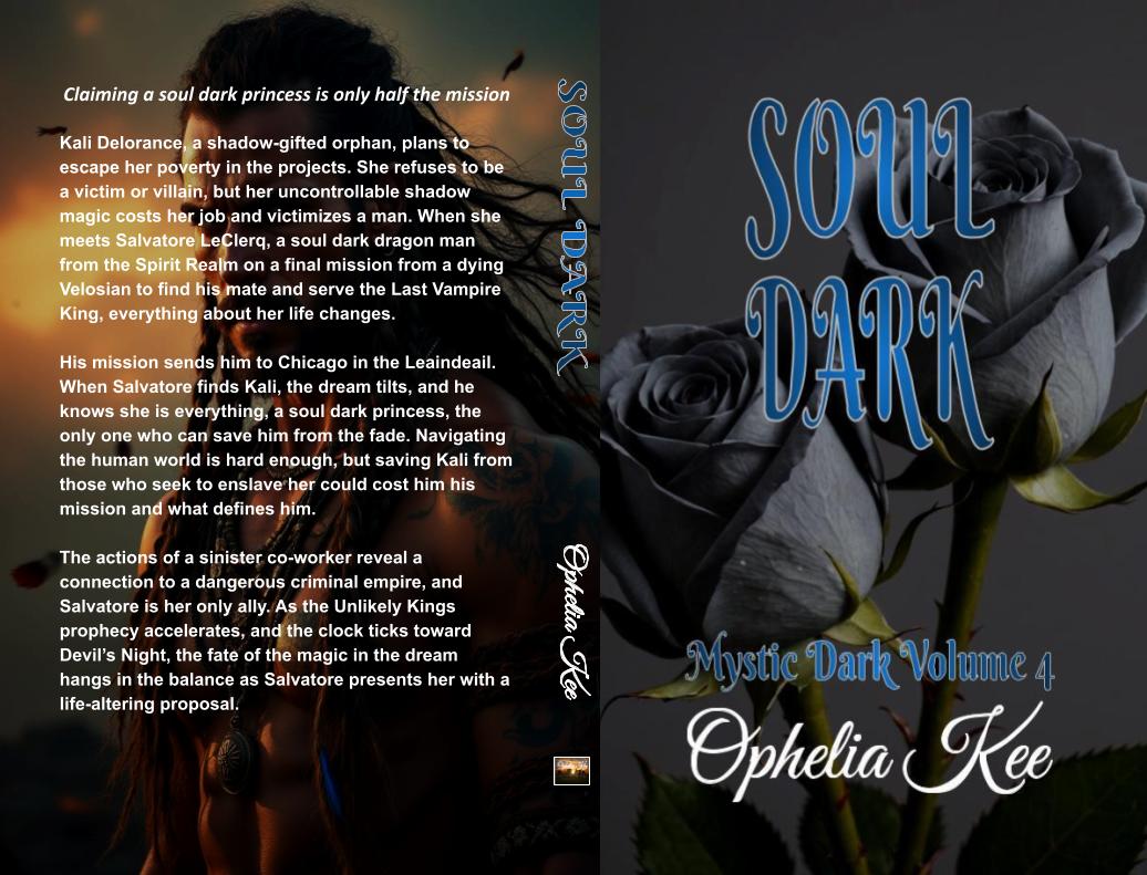 Soul Dark is the fourth volume in the Mystic Dark miniseries by Ophelia Kee. Set in and around an eerily similar dream version of Chicago, a shadow gifted human falls for her vampire rescuer from another realm. If you want a dark vampire turned white knight in a twisted story of the damsel in distress as an unwitting villain, Soul Dark is your next read.