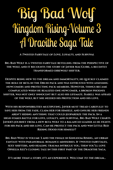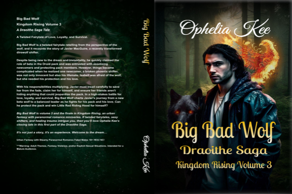Big Bad Wolf is volume 3 and the finale in Kingdom Rising, an urban fantasy with paranormal romance miniseries. If twisted fairytales, sexy shifters, and healing trauma intrigue you, then you’ll love Ophelia Kee’s closing tale in this first part of the Draoithe Saga.