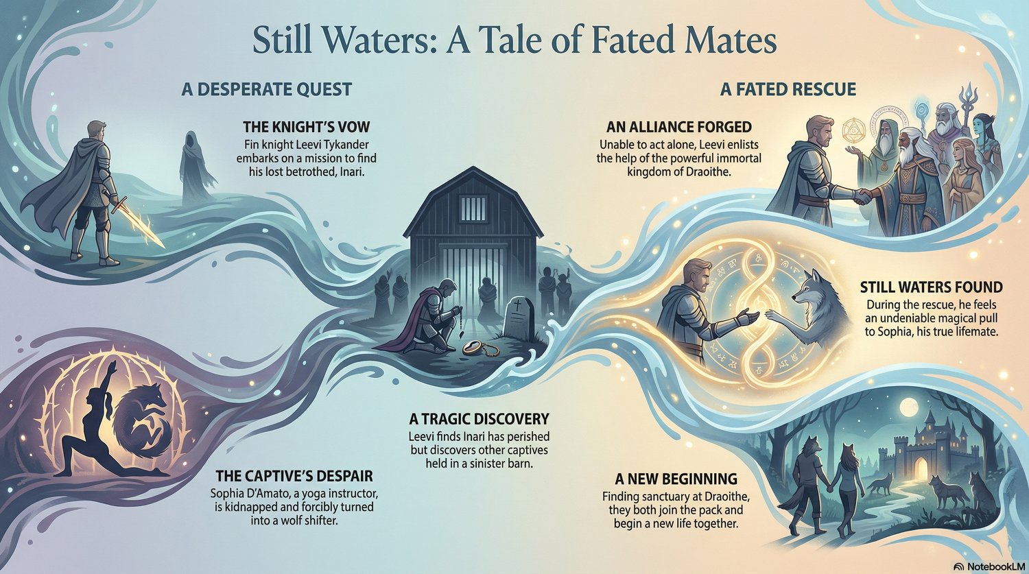 Prepare to be enthralled by Still Waters, a captivating story set in the dream, a world crafted by the urban fantasy and paranormal romance author Ophelia Kee. Explore the tangled web of destiny and magic as the inexorable pull of love unites one Fin knight and his coastal wolf mate.