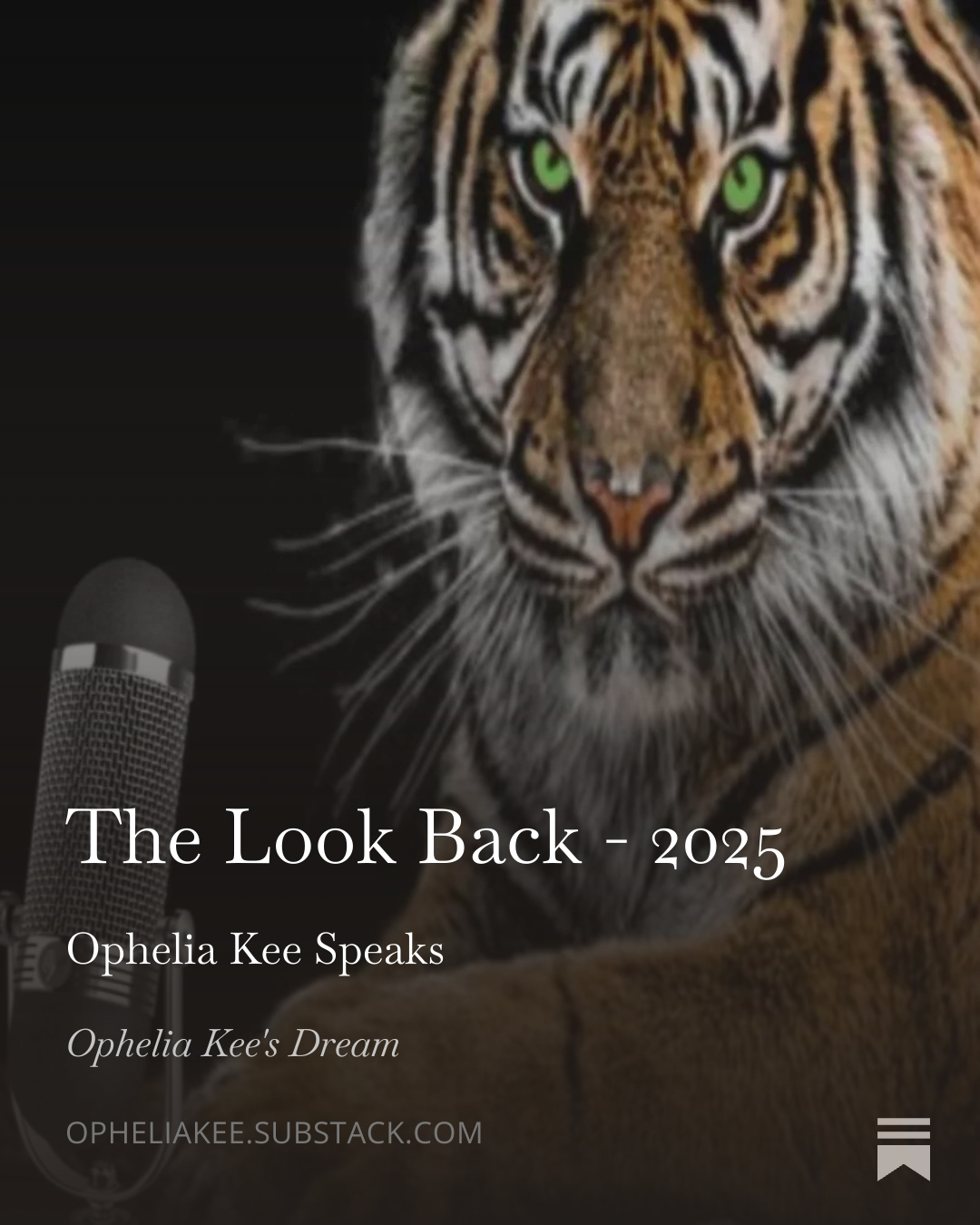 This week's Ophelia Kee Speaks post: The Look Back - 2025. Check it out if you want a snapshot of what I've been doing all year long. Happy New Year!