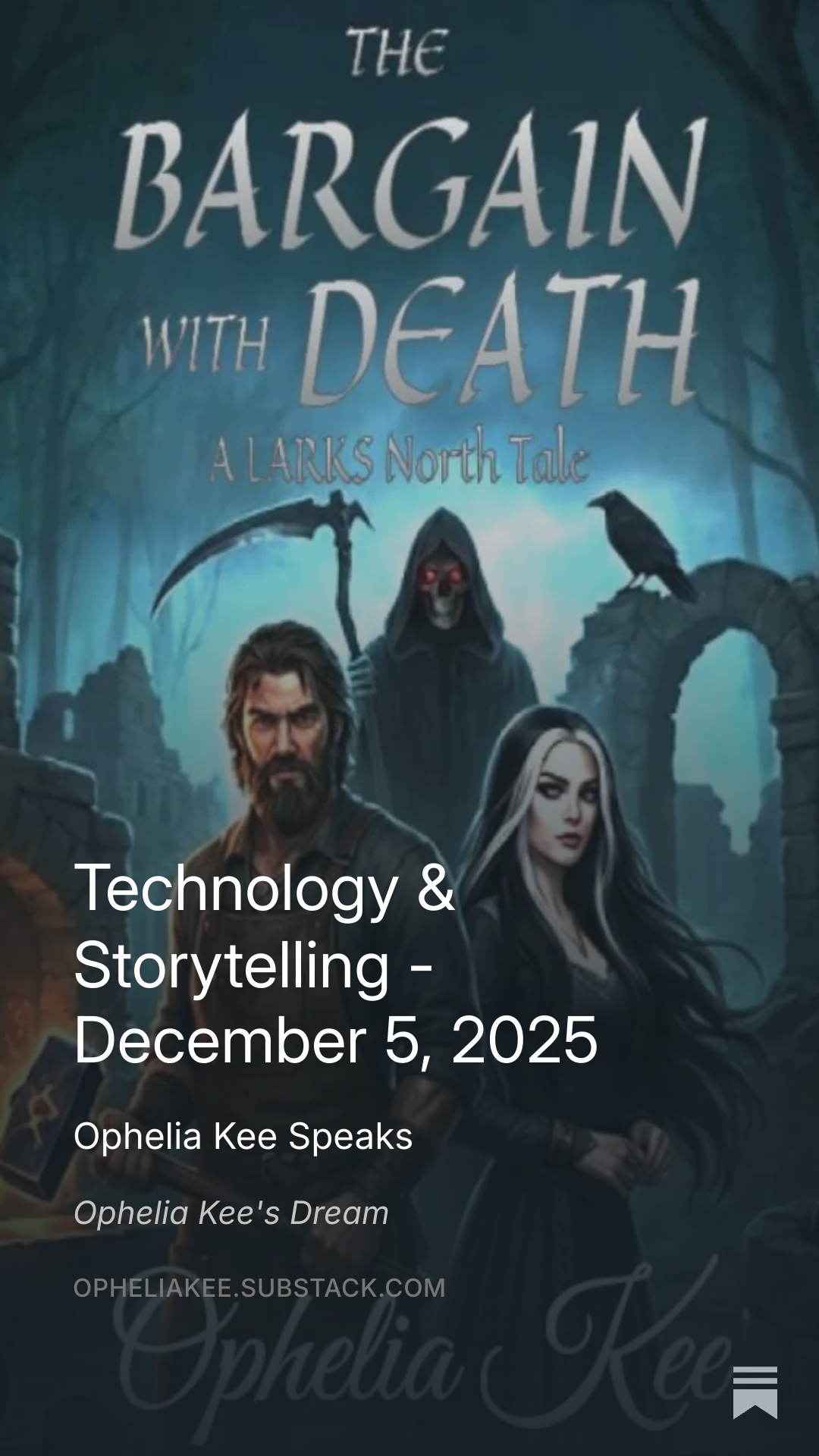 Be sure to check out Substack to join my newsletter friends and to find the latest installment of Ophelia Kee Speaks on Fridays and the occasional Draoithe Saga Fictional Nonfiction post on Sundays. I shifted from the 16 by 9 to the 9 by 16 video format.